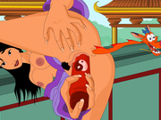 Mulan dildoes pussy while Mushu is poking her ass