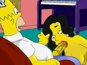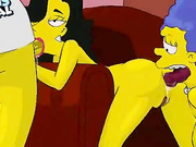 Marge and Agent from Simpsons porn cartoon are pleasing thick Homer's cock